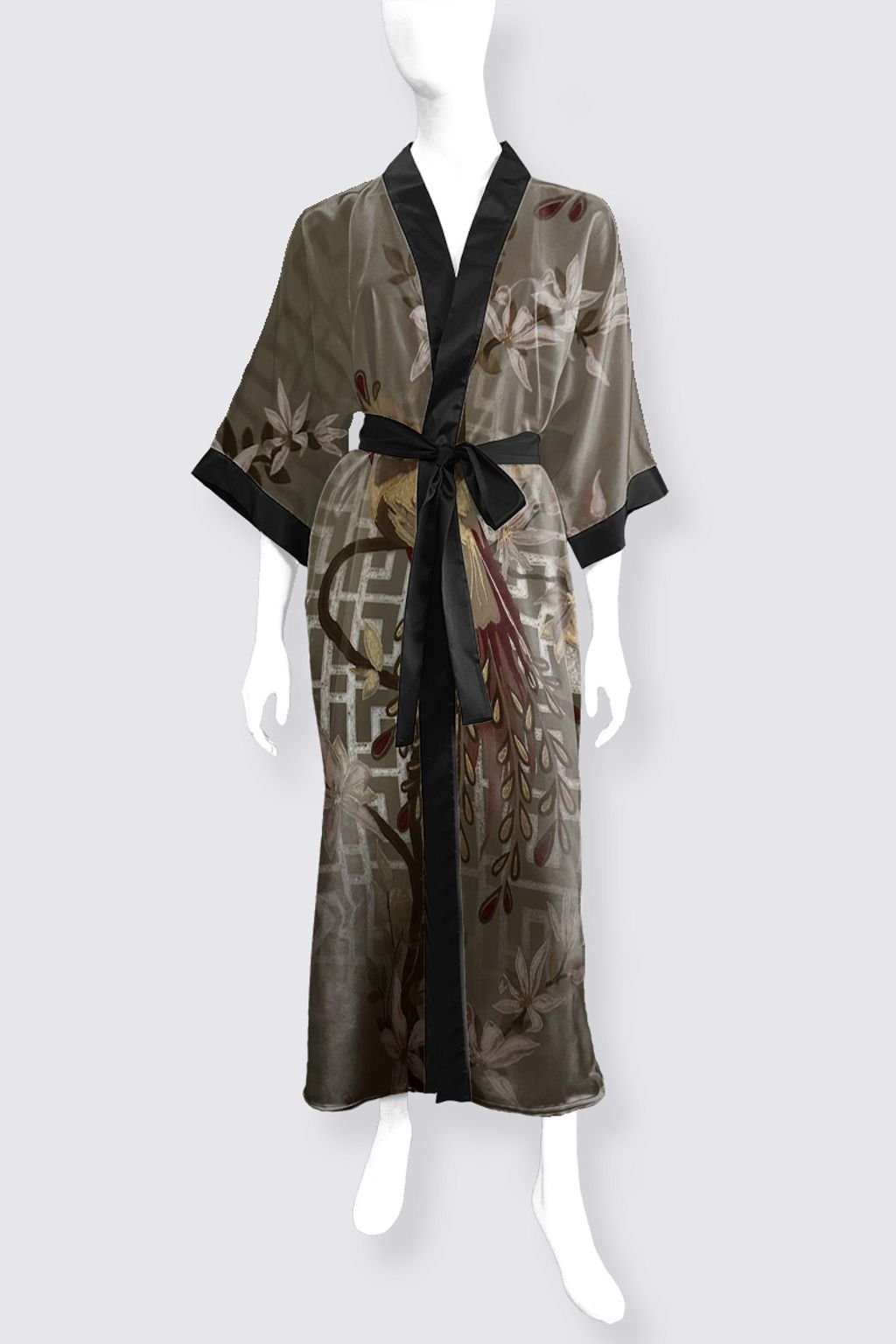 Perch of Beauty Phoenix Long Satin Kimono