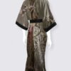 Elegantly lined in black satin, this exquisite piece exudes sophistication with every wear. Complete with a matching black satin belt, it offers a customizable fit to accentuate your silhouette. Featuring slits on both sides for ease of movement, this kimono boasts a length of 52 inches, providing graceful coverage.