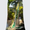 This captivating image features a photograph of one of Sherilyne’s fused glass sailboats, artfully manipulated to evoke a whimsical and dreamlike atmosphere